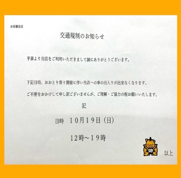 【とん兵衛】おおとり祭りにて店頭販売いたします!