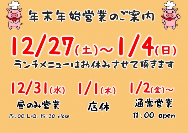 有限会社 磯部クオリティーサービス 年末年始営業のお知らせ