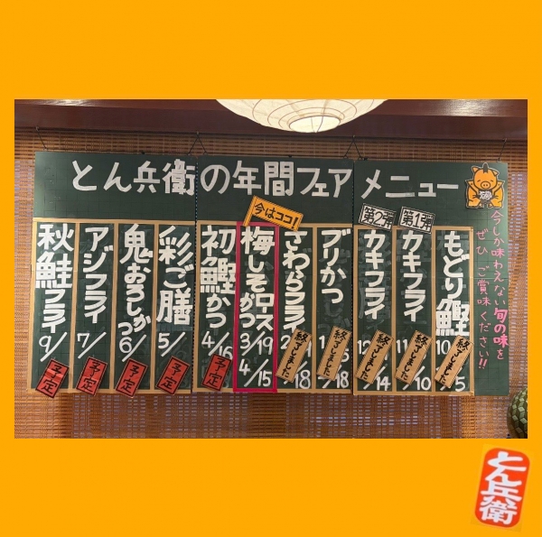 【とん兵衛】酸っぱ旨い 梅しそロースかつ!! 2026-03-22 10:12:19 いつもとん兵衛をご利用いただきありがとうございます春のおすすめ!食欲そそる酸っぱ旨い梅しそロースかつフェア開催中✨梅の味がしっかりしているので何もかけずそのままでも美味しいです✨物足りないようでしたら卓上の岩塩やお醤油をお使いくださいいきなりソースをかけてしまいますと梅しその美味しさを感じられずもったいないです提供期間も短いのでぜひお早めに!